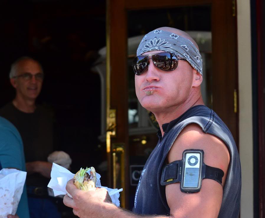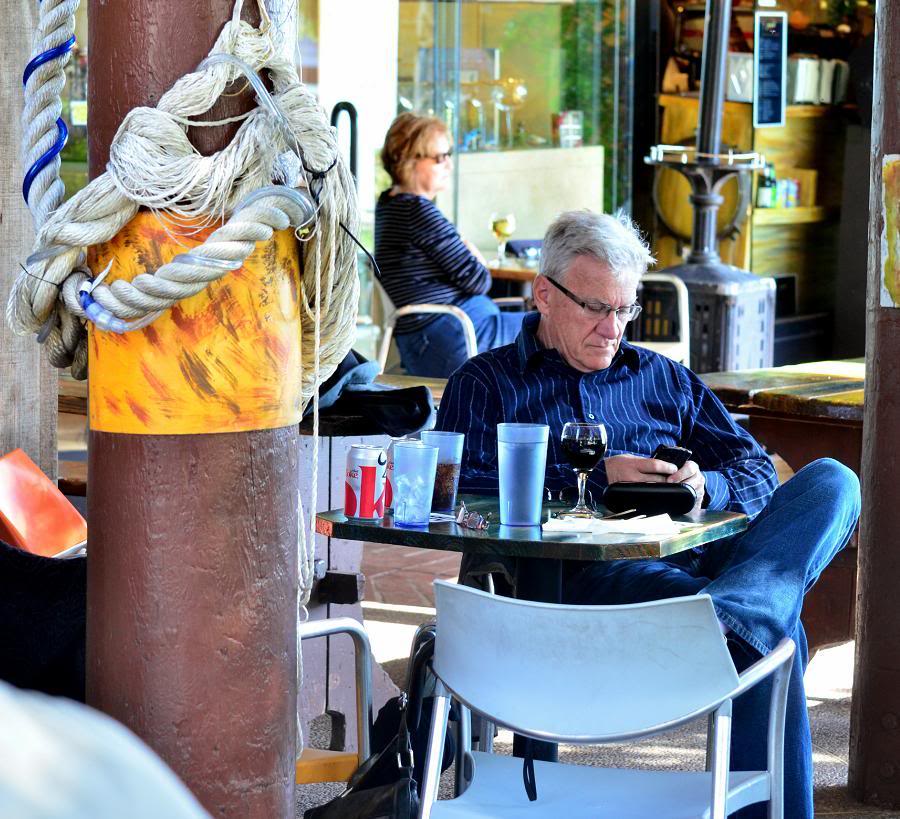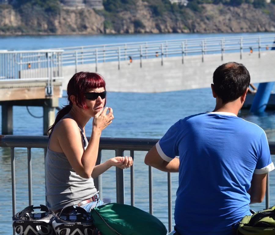Скоро мне надоело снимать вечные красоты сан-францисского залива, и я решил переключиться на обитателей города. В какой части штата ни снимай, калифорнийцы представляют собой красочную толпу, но Саусалито в этом смысле даёт форы любому другому городу. Мой новый телеобъектив позволяет издалека выхватывать из толпы портреты людей, которые и не подозревают, что их снимают.