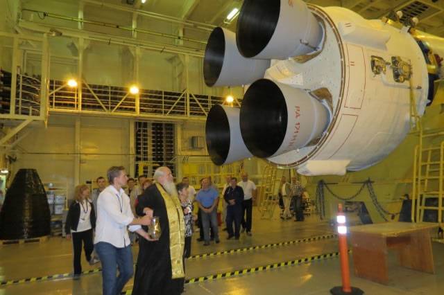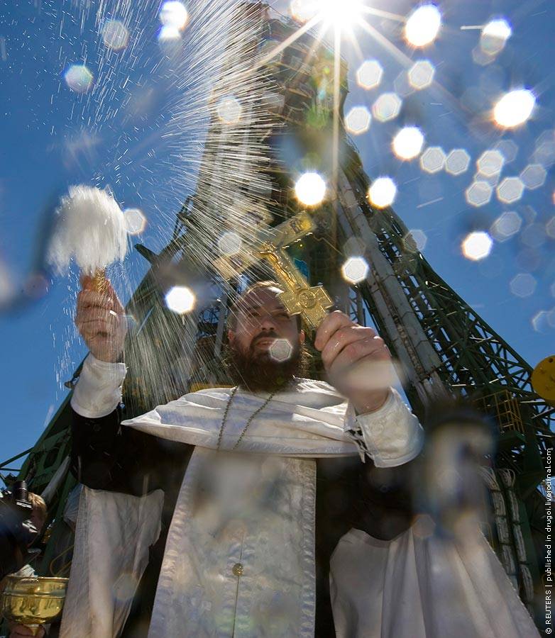 Вот как пару лет назад об этом великом достижении российской космонавтики сообщал центральный канал "Вести" :"На Байконуре зародилась традиция - освящать ракеты перед стартом. В сравнении с полувековой историей космических пусков - совсем недавно. Но все эти 50 лет, несмотря на запреты и гонения, они были неотделимы: церковь и космос.