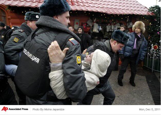 MOSCOW (AP) — Police clashed Tuesday on a central Moscow square with demonstrators trying to hold a second day of protests against alleged vote fraud in Russia's parliamentary elections.